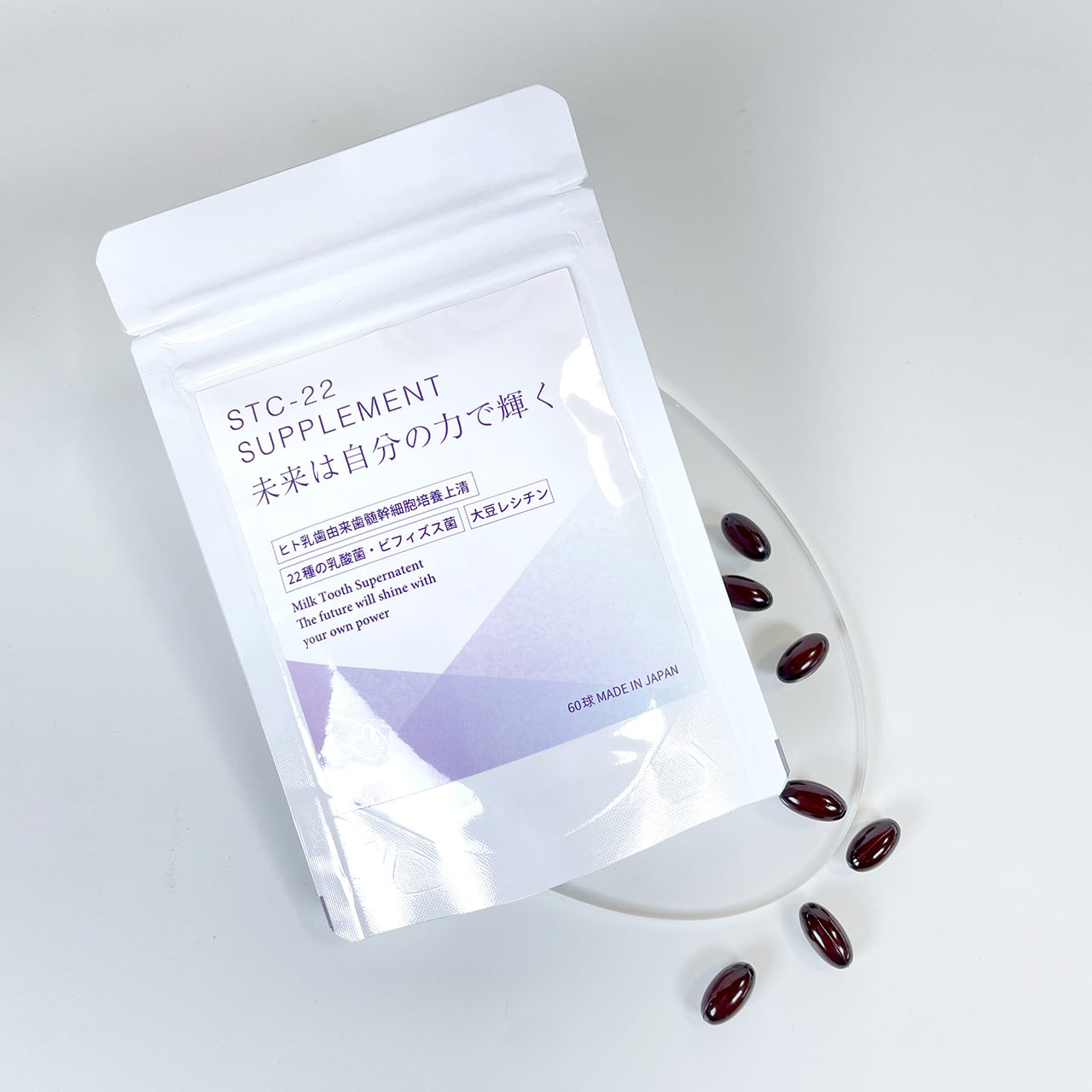 乳歯歯髄幹細胞培養上清で身体全体の再生力を高め、乳酸菌で腸内環境をサポートします。
