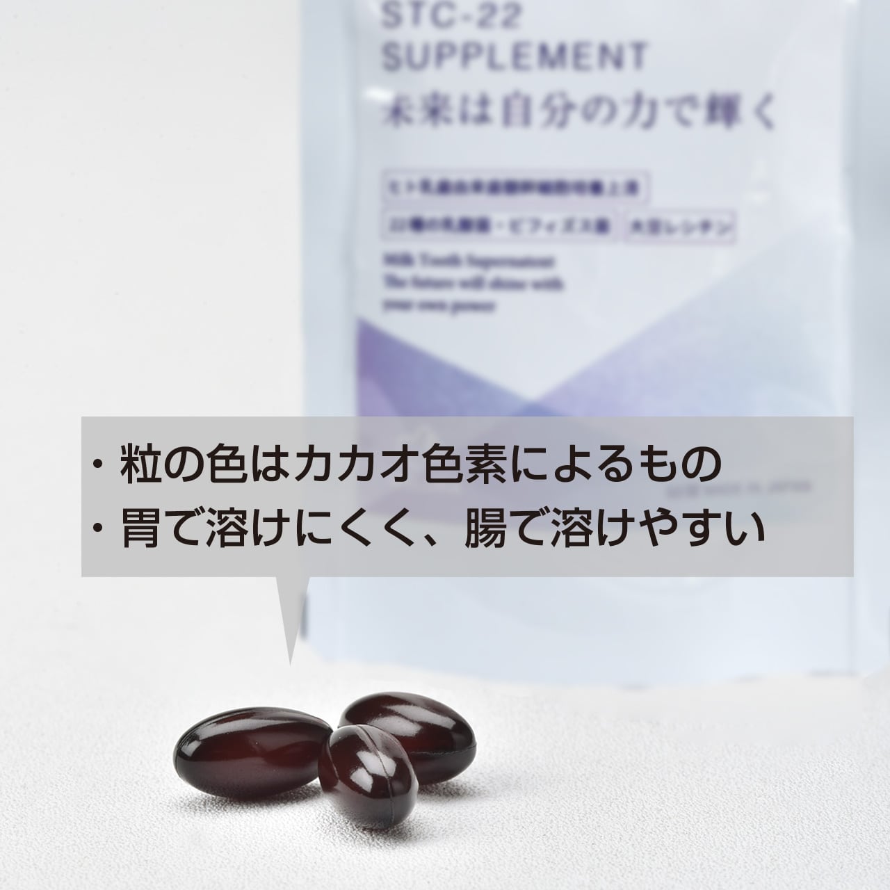 成分:ビタミンE含有植物油(国内製造)、ヒマワリ油、乳酸菌混合末(乳成分含)、歯髄細胞順化培養液、グリセリン、ゼラチン、加工でんぷん